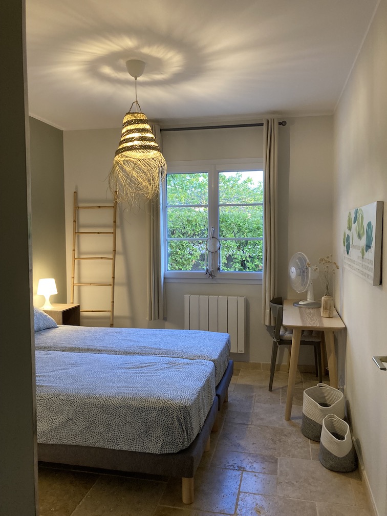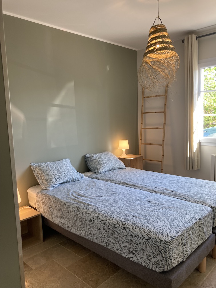 Chambre double : 2 lits jumeaux de 80×200 cm qui peuvent se transformer en 1 lit de 160×200 cm
