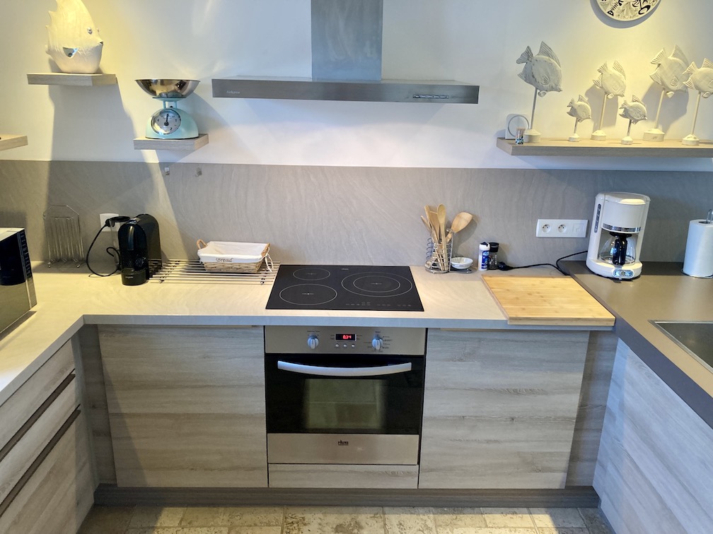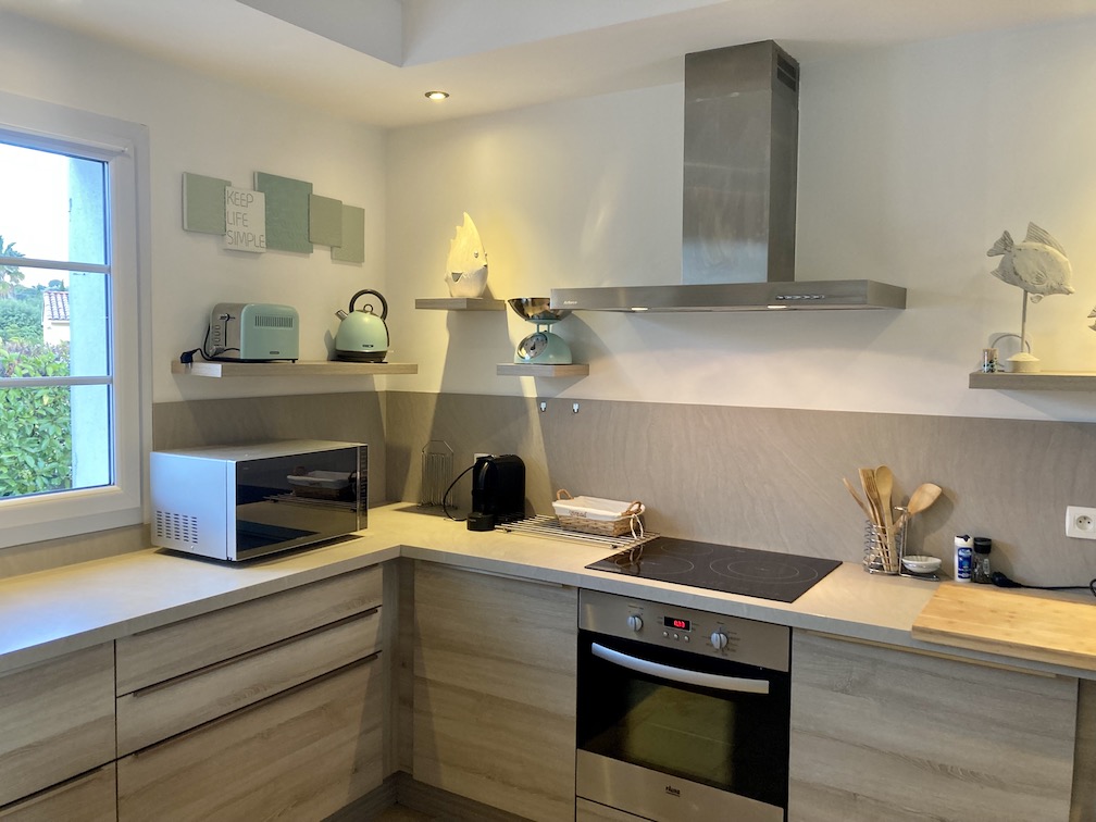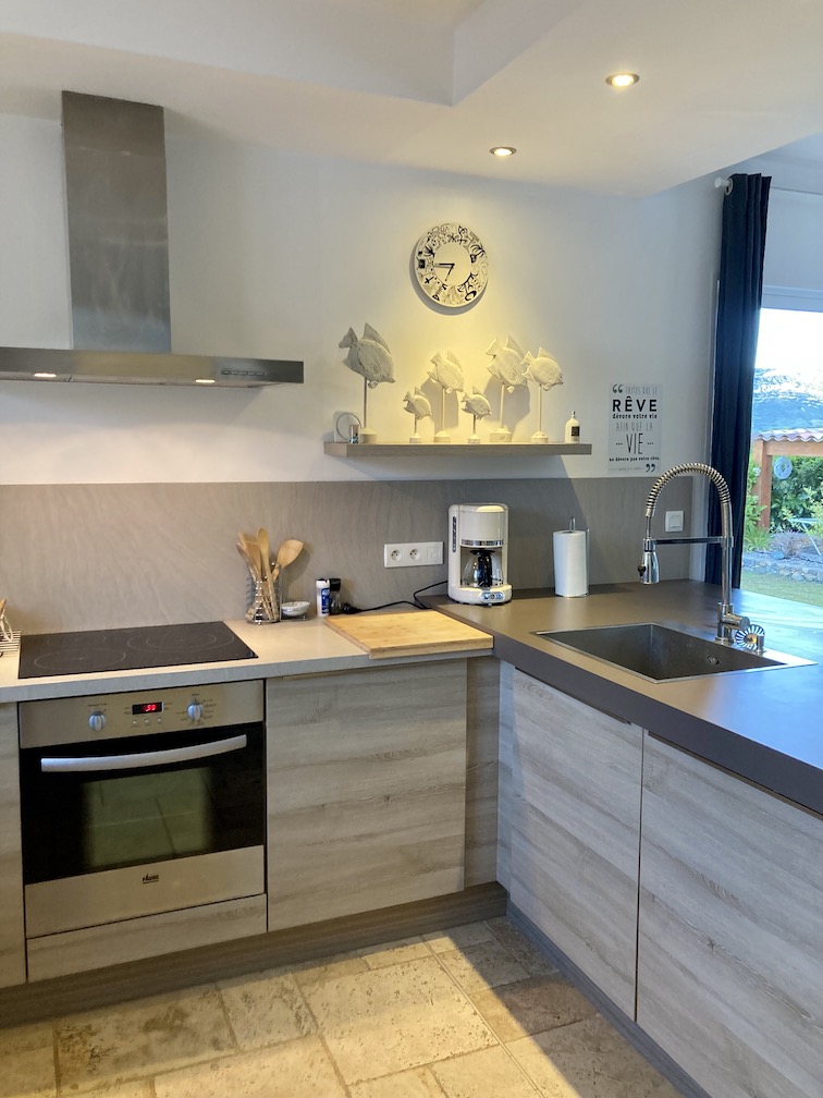 Réalisez vos bons petits plats dans la grande cuisine lumineuse, parfaitement équipée et complètement ouverte sur la salle à manger et le séjour.